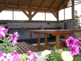 Az 5 apartman házunk 2 db egyenként 32 m2-es, 5 fő elszállásolására alkalmas (2x2 db normál ágy + 1 db pótágy), teljesen felszerelt lakrészt (nappali-étkező, hálószoba, zuhanyzós fürdőszoba, WC, terasz, légkondicionáló) foglal magában.